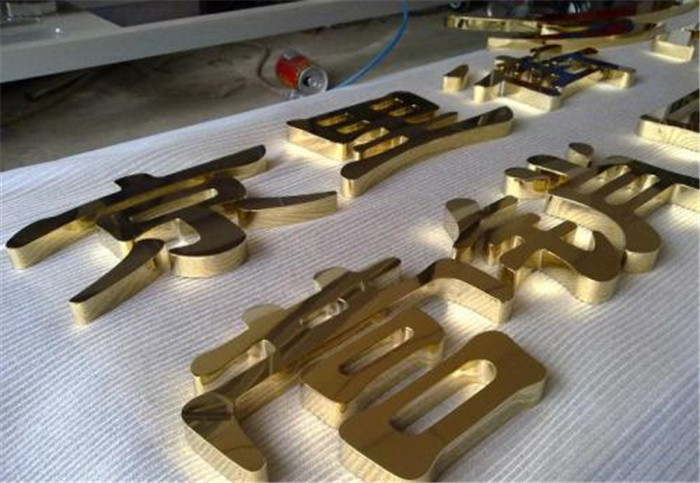 不銹鋼字,有鈦金字,不銹鋼精工字,不銹鋼較鍍鋅板而言可謂貴金屬,加上其金屬質感較獨特,故一直以來較多人愿意讓它以本來面目出現,不銹鋼,人們利用其"不銹"的特點,采用拋光(發紋)面即啞光處理,或直接采用8K(鏡面)處理,讓其炫目多彩,這種類型屬建筑流派中的光亮派的一種,但兩種處理有個共同缺點,缺乏個性,因為多年來人們多選用這種工藝,固其個性不彰顯;在戶外燦爛的陽光下,可能因金屬的折射原因,令文字筆畫不清晰,而在陰雨天,金屬因失去光澤或蒙灰的緣故同樣顯得模糊。