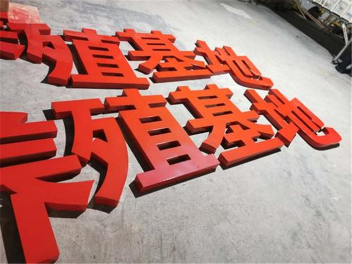 鐵皮字。前幾年沒有吸塑發光字之前應用比較的多,分平面鐵字和凸面鐵字兩種,材料為鐵皮敲打,用焊接形式加厚度,分烤漆和噴漆上色。