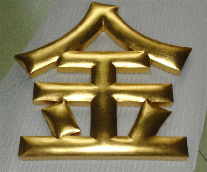 銅字。仿古銅字,銅牌,有鐵字的優點外,還有個特別就是不會生銹,當然它的顏色只有一種,即金黃色字。給人感覺富麗堂皇、很威嚴。許多政府單位用得多,像外樓的字、門牌、行政牌等。銅,亦是較易氧化的金屬,因此人們常將它進行電鍍或完成字形加工后將表面拋光處理,再做封閉漆(防銹),使其金光閃閃。